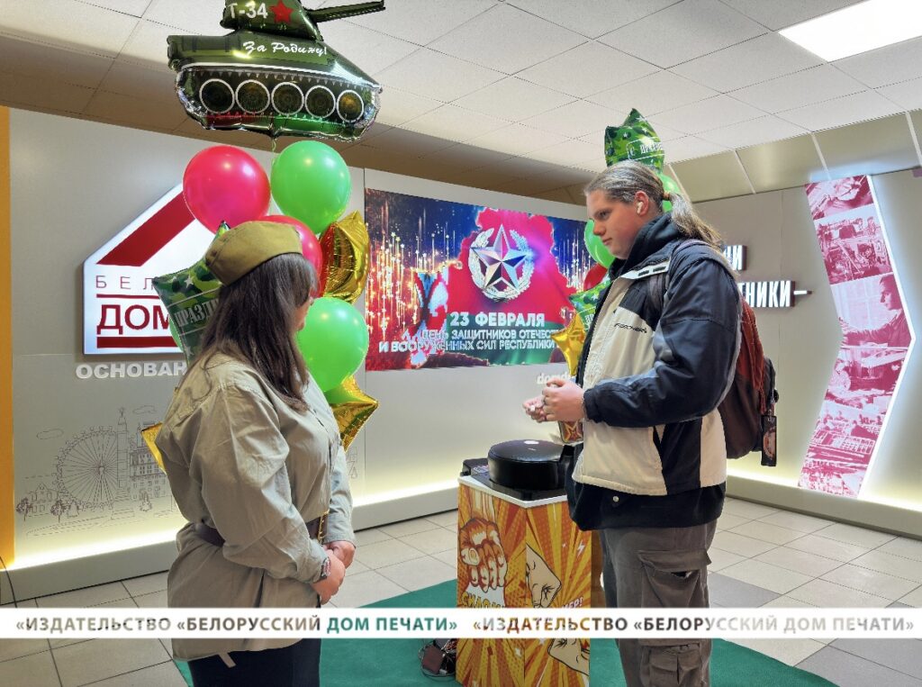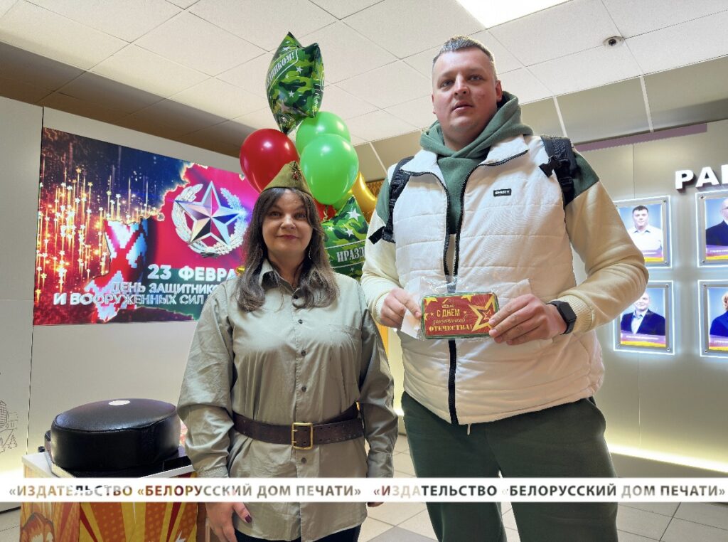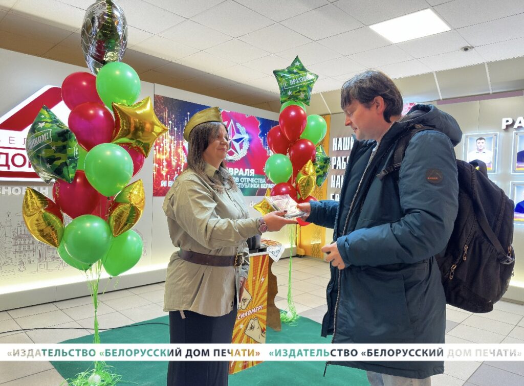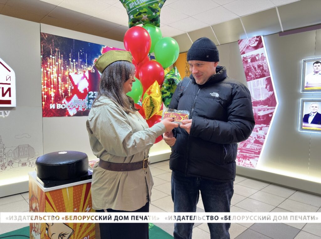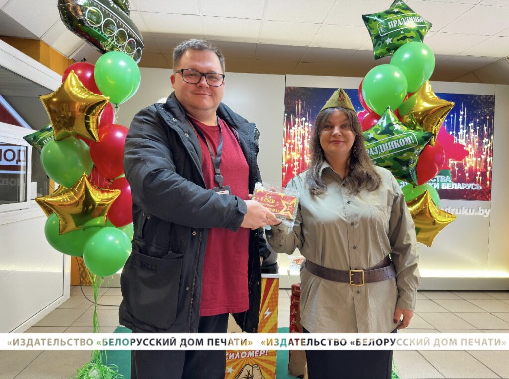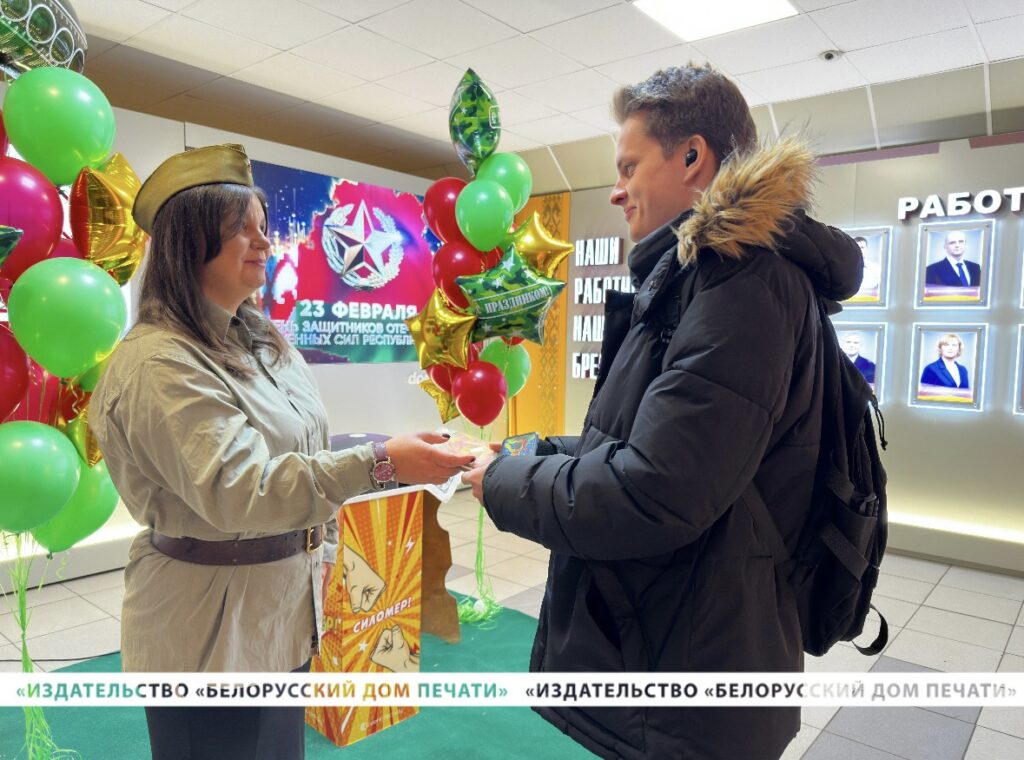 В день главного мужского праздника – Дня защитника Отечества и Вооруженных Сил Республики Беларусь – на проходной нашего предприятия руководство и профсоюзный комитет подготовили настоящую праздничную атмосферу, чтобы поздравить всех мужчин с праздником, который символизирует силу, мужество и отвагу, а также служит отличным поводом выразить признательность и уважение каждому мужчине, вносящему свой вклад в развитие нашего Дома печати.